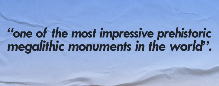 “one of the most impressive prehistoric megalithic monuments in the world on account of the sheer size of its megaliths, the sophistication of its concentric plan and architectural design, the shaping of the stones”.